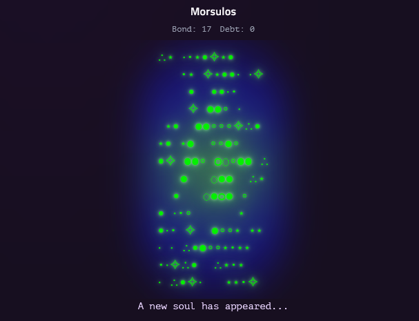 This is a simple game, cybernetic-soulform tamagotchi's. I tried to make it a bit more abstract and work within' the constraint of being only one person. It was a fun systems design endeavor though.